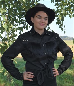Dámská košile žlutá pera, černé sedlo a boční díly