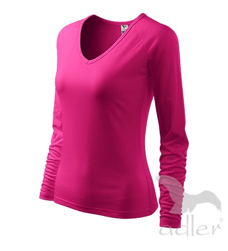Kvalitní dámské triko vyšší gramáže. Průkrčník ve tvaru V. Dlouhý raglánový rukáv. Projmutý střih zvýrazňující dámskou siluetu. Díky přídavku elastanu drží tvar. Vhodné pro potisk a výšivku. Tištěná saténová etiketa.